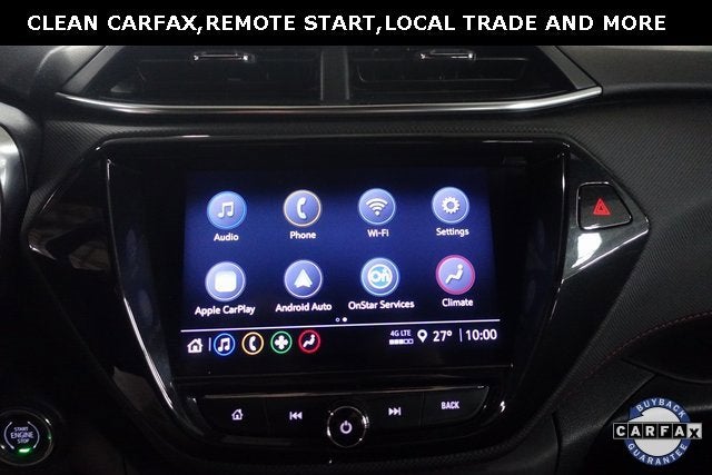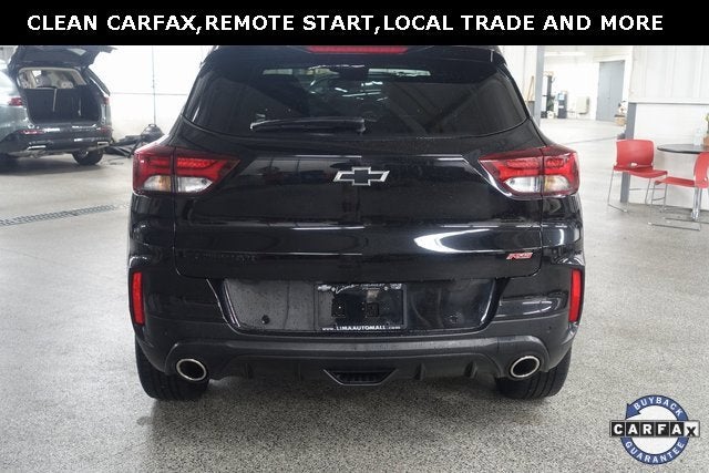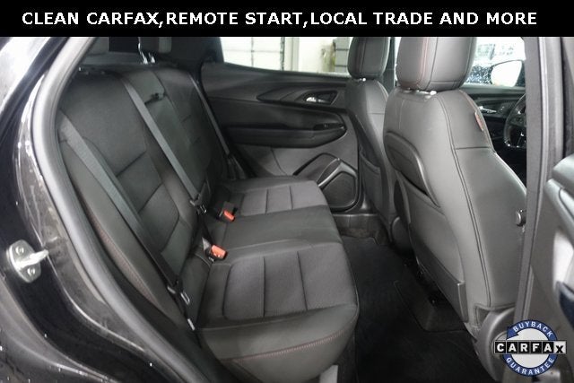 Clean CARFAX. Mosaic Black Metallic 2023 Chevrolet TrailBlazer RS FWD CVT 1.3L Ecotec Turbo DOHC SIDI w/VVT Touch Screen Radio, Remote Start, Heated Seats, Bluetooth®, Backup Camera, Steering Wheel Audio Controls, Auxiliary Input Jack and USB Connections, 4G LTE Wi-Fi Hotspot, Automatic Emergency Braking, Forward Collision Warning, Apple Carplay, Android Auto.