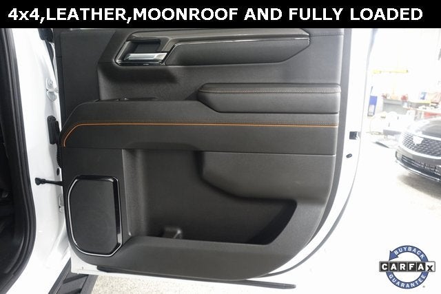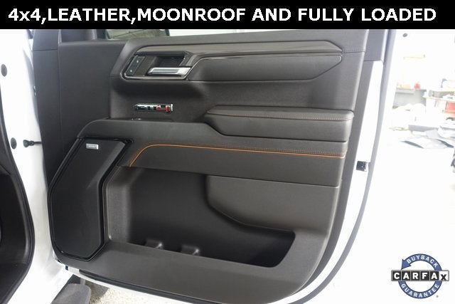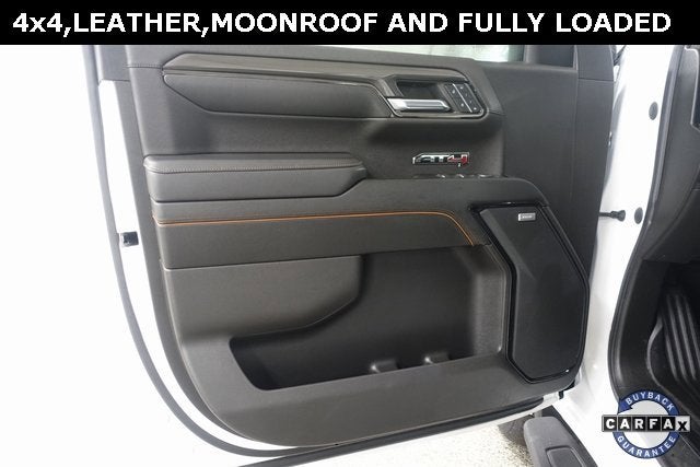 Summit White 2023 GMC Sierra 1500 AT4 4WD 10-Speed Automatic EcoTec3 6.2L V8 Touch Screen Radio, Running Boards, Remote Start, Power Sunroof, Memory Seat, HUD/Heads-Up Display, Heated and Cooled Leather Seats, Bose Audio, Bluetooth®, Backup Camera, Steering Wheel Audio Controls, Auxiliary Input Jack and USB Connections, Trailer Brake Controller, Universal Home Remote, 4G LTE Wi-Fi Hotspot, Automatic Emergency Braking, Forward Collision Warning, Rear Cross Traffic Warning, Apple Carplay, Android Auto, 360-degree surround-view camera system, Heads Up Display, Wireless Charging Pad, 10-Speed Automatic, 4WD, Jet Black With Kalahari Accents Leather.